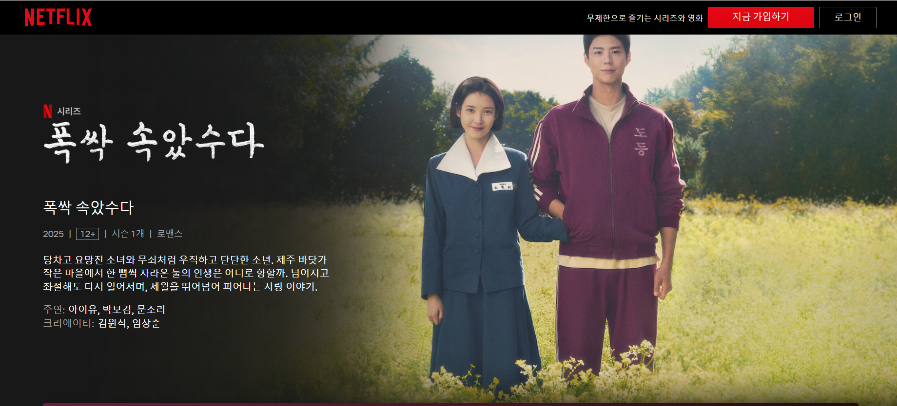 '폭싹 속았수다'는 2025년 3월 7일부터 넷플릭스에서 공개중인 오리지널